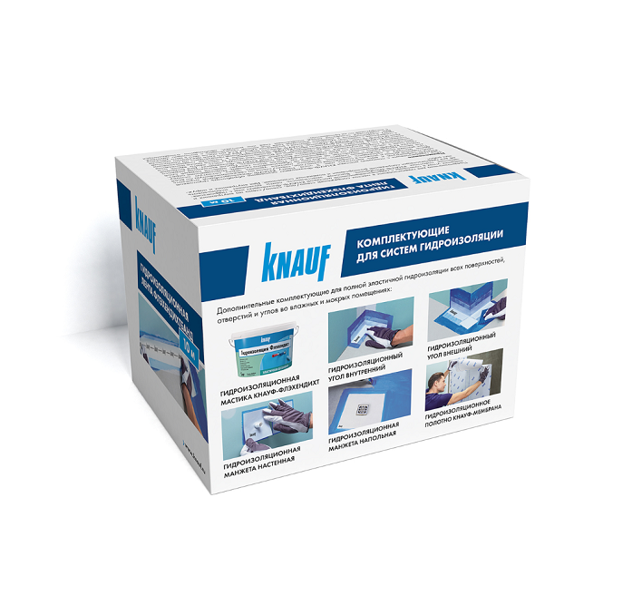 Предназначена для гидроизоляции в местах сопряжений стена/пол, внутренних и внешних углов и т.п. в сочетании с гидроизоляцией КНАУФ-Флэхендихт.