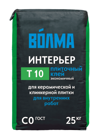 "ВОЛМА-Интерьер" - сухая клеевая смесь на основе портландцемента, фракционированного песка и модифицирующих добавок. Экономичный. Для керамической и клинкерной плитки.