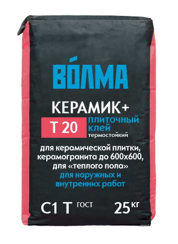 "ВОЛМА-Керамик+" - сухая клеевая смесь на основе портландцемента, фракционированного кварцевого песка и модифицирующих полимерных добавок, повышающих пластичность и адгезию к основанию. Термостойкий.