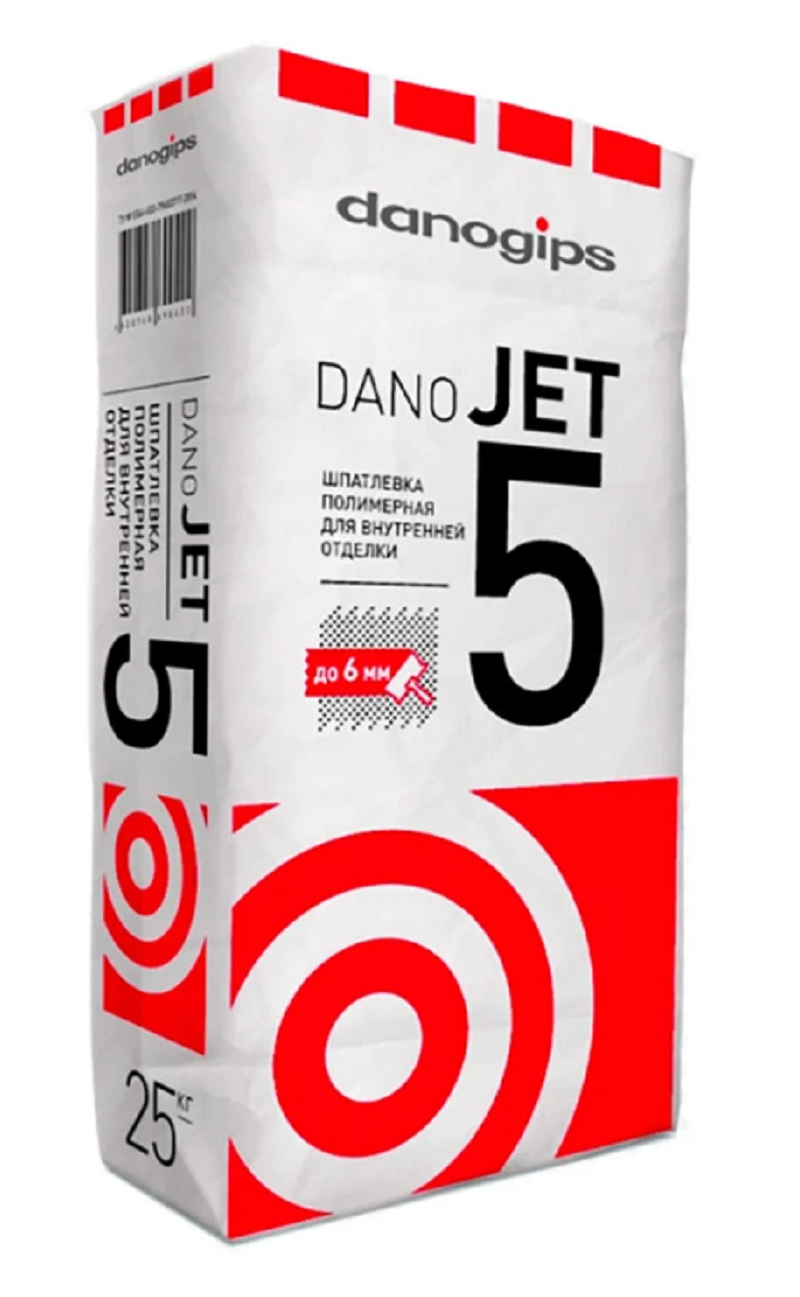 Danogips JET5 – сухая полимерная шпатлевка, предназначенная для выравнивания поверхности в плоскость, а также подготовки основания под оклейку обоями.