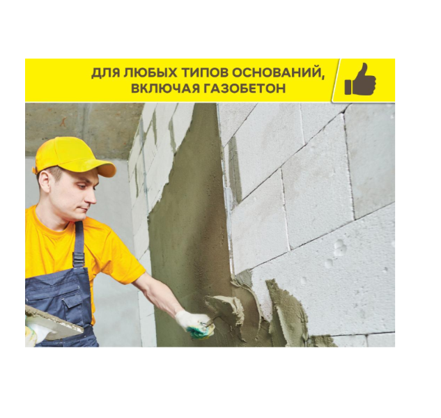 Основание - Бетон, Газобетон, Камень, Кирпич, Цементная штукатурка, Шамотный кирпич, Ячеистый бетон