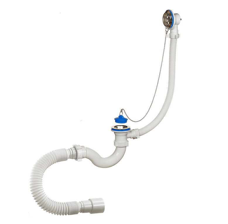 В комплекте идут полированные нержавеющие чашки на слив и перелив. Сифон комплектуется нержавеющими винтами и гайками М6 и хромированной латунной цепочкой L-500мм с кольцами на концах. После использования, пробку можно воткнуть в чашку перелива. Прокладка бабочка на слив сделана из качественного материала ТЭП. Литая конструкция сифона самоочищающаяся и позволяет добиться максимальной скорости слива воды. Гибкий отвод позволяет подключить слив сифона к канализации с диаметрами 40 или 50мм.