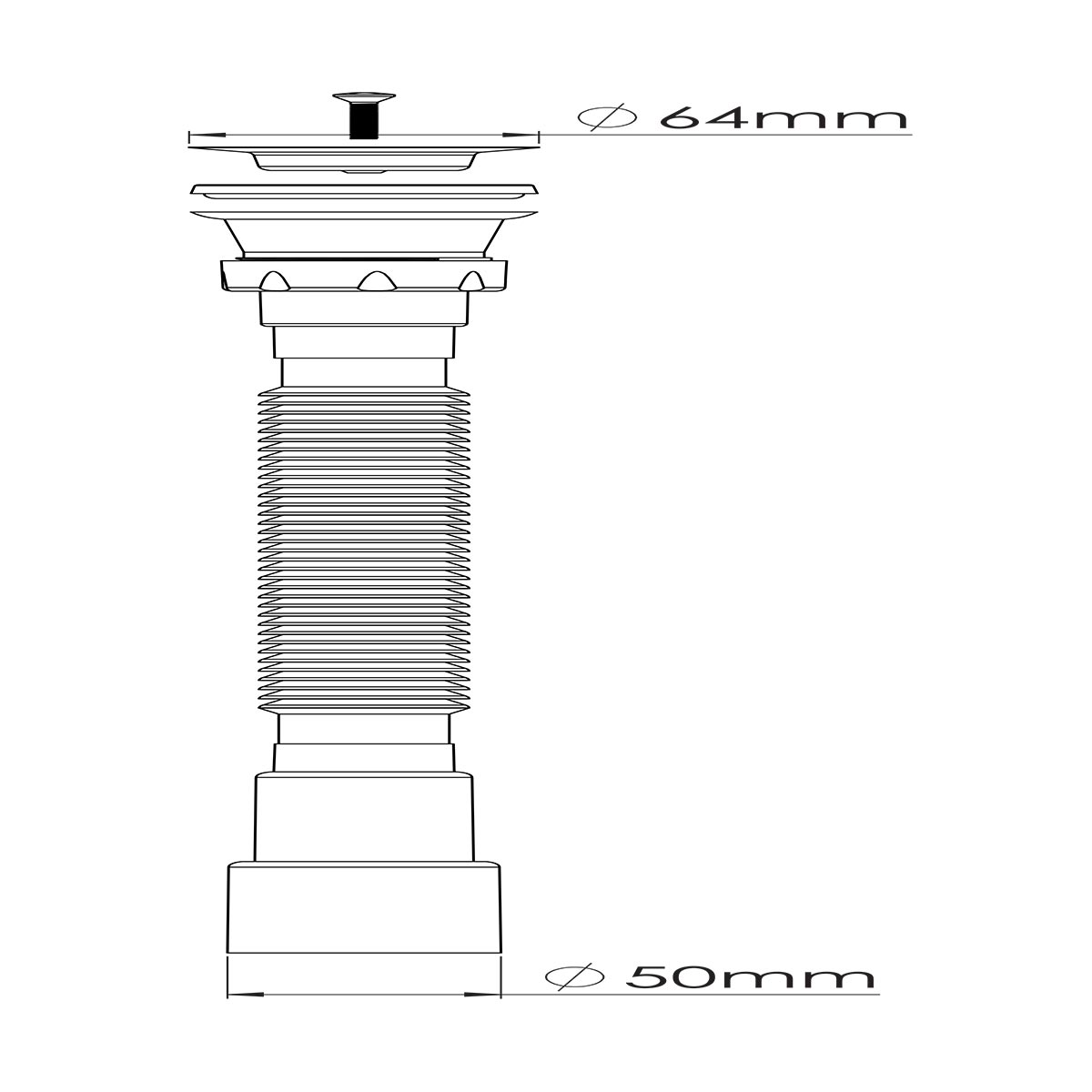 Металлическая часть выпуска гофросифона и винт изготовлены из нержавеющей стали марки AISI 304, обеспечивает невозможность их окисления.