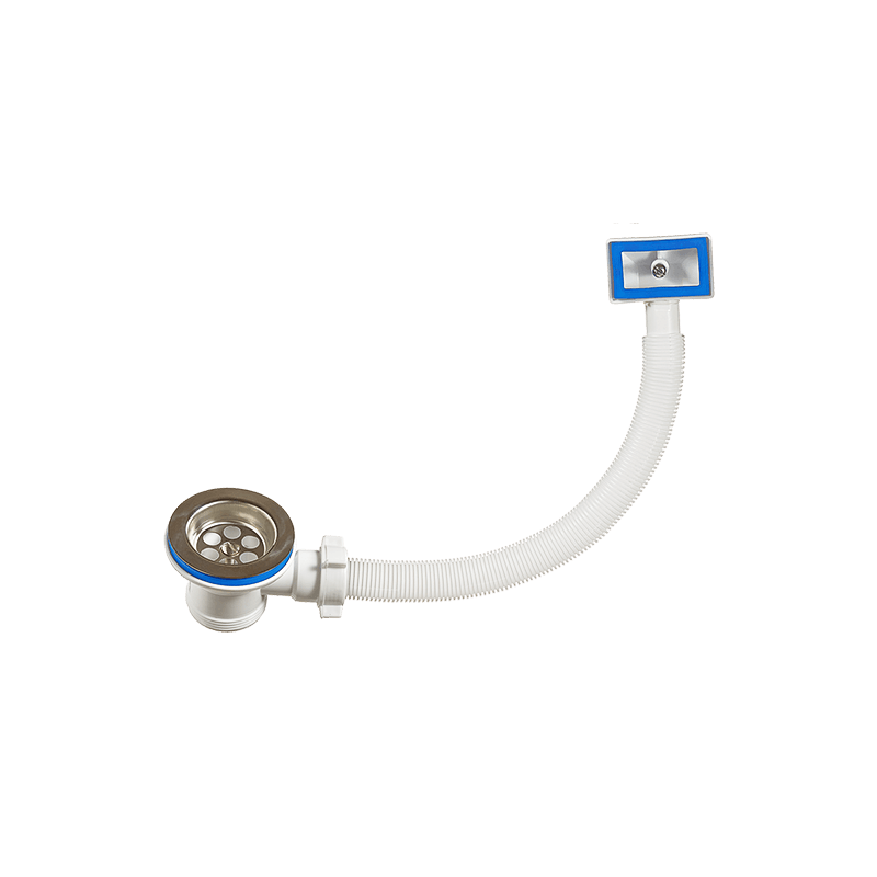Пластиковый выпуск с нержавеющей чашкой д.70мм и резьбой 1 1/2" для моек со сливом до д.52мм и прямоугольным переливом. В комплекте идут две прокладки на перелив – прямоугольная на квадратную форму мойки и полукруглая на круглую форму мойки.