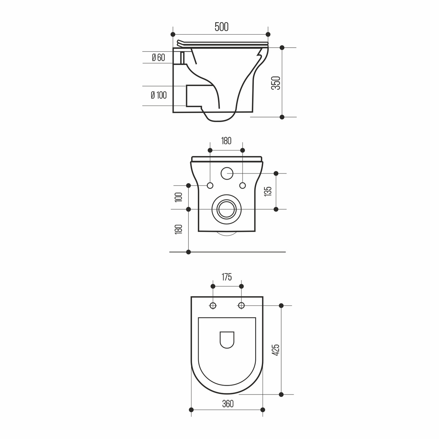 - межосевое расстояние под шпильки для подвеса унитаза 180 и 230 мм;