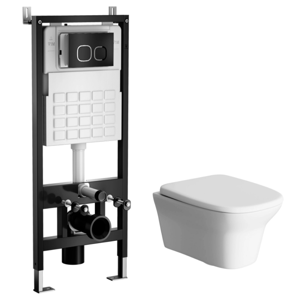 Инсталляция WAVE (Инсталляция механика+ унитаз "STONE" подвесной, квадратная кнопка А2 черная) 3 ч.