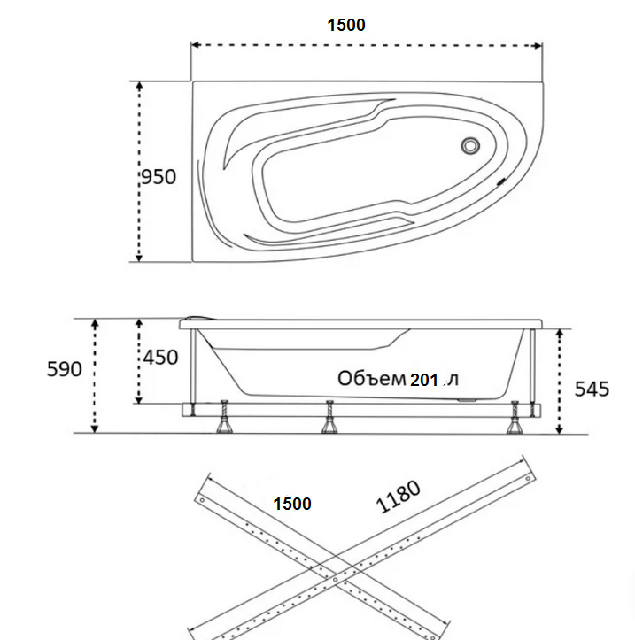 Ванна акриловая ТРИТОН "Мадрид" правая 1500x950мм (в комплекте с каркасом, экраном и сифоном) 4 ч