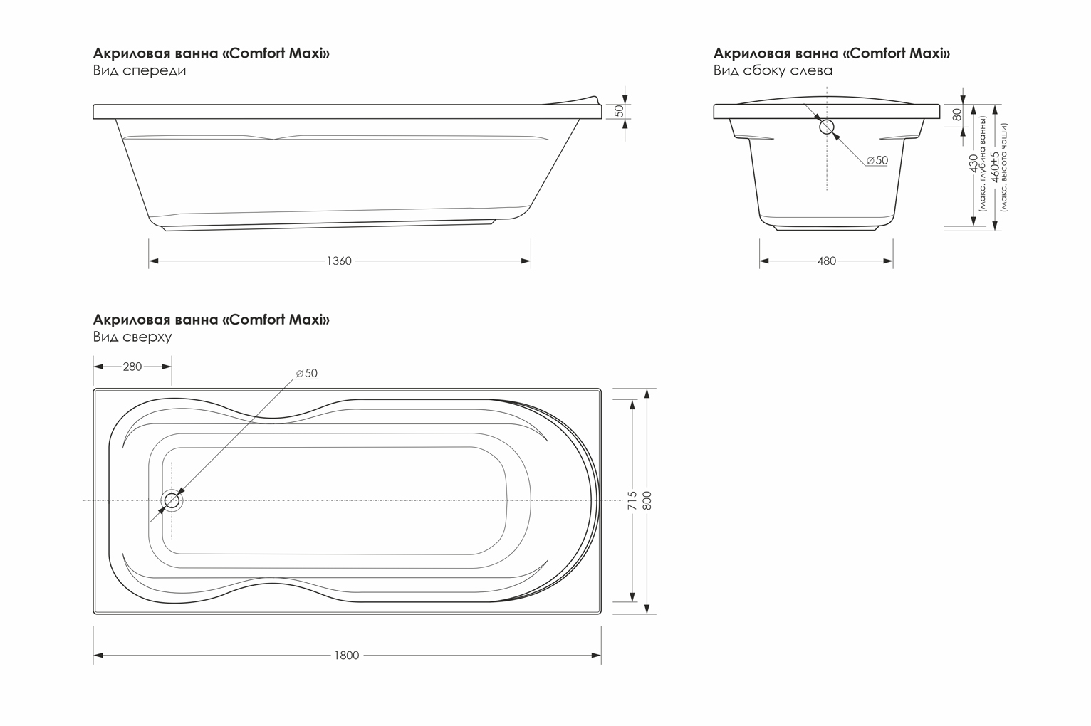 Ванна акриловая МЕТАКАМ "Maxi" 1800х800 мм (в комплекте с каркасом, без экрана и без сифона) 2 ч.