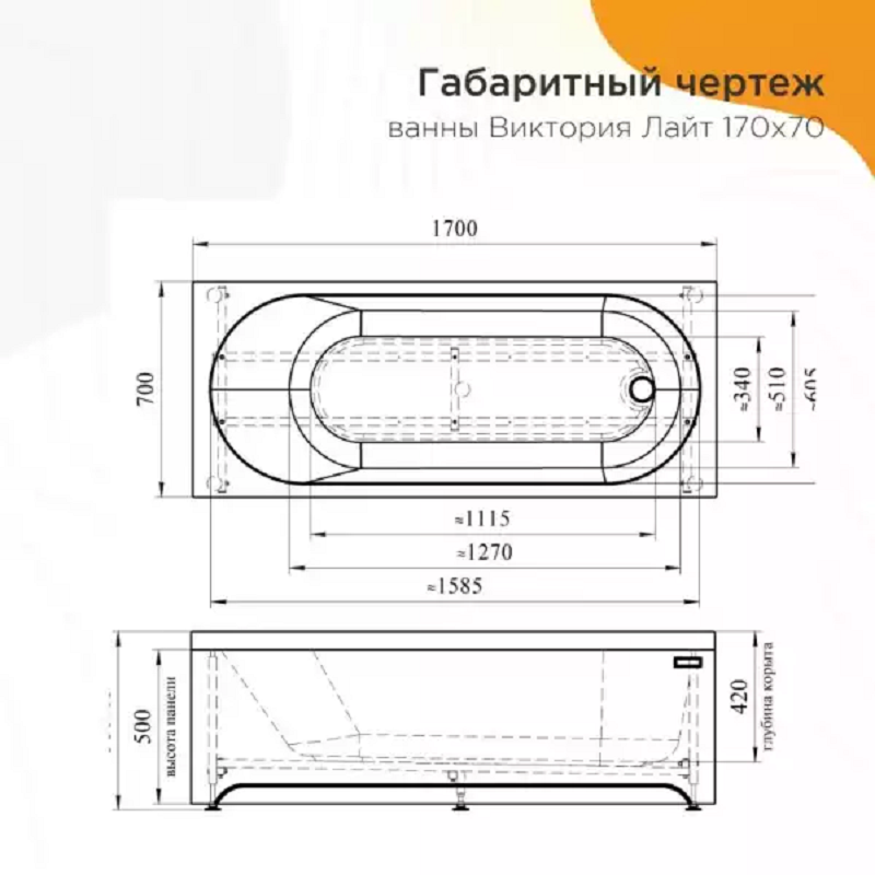 Ванна акриловая ВИКТОРИЯ лайт 1700x700 мм на каркасе с экраном/072650