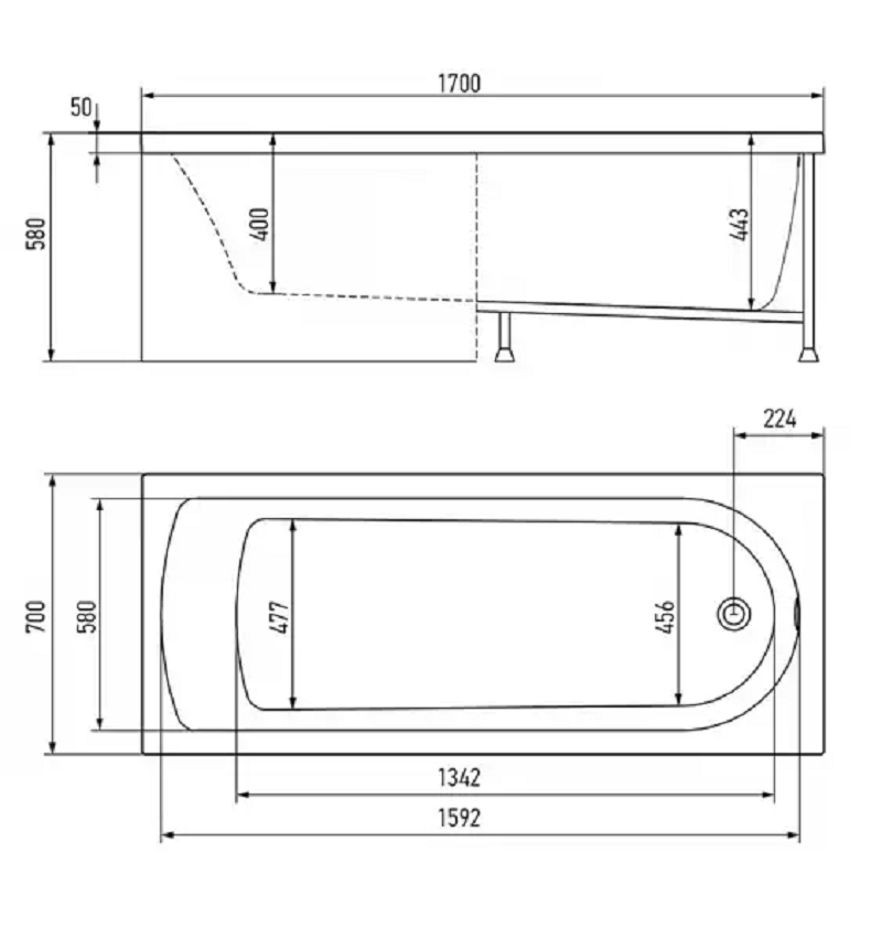 Ванна акриловая Michigan 1700х700 мм на каркасе с экраном и сифоном