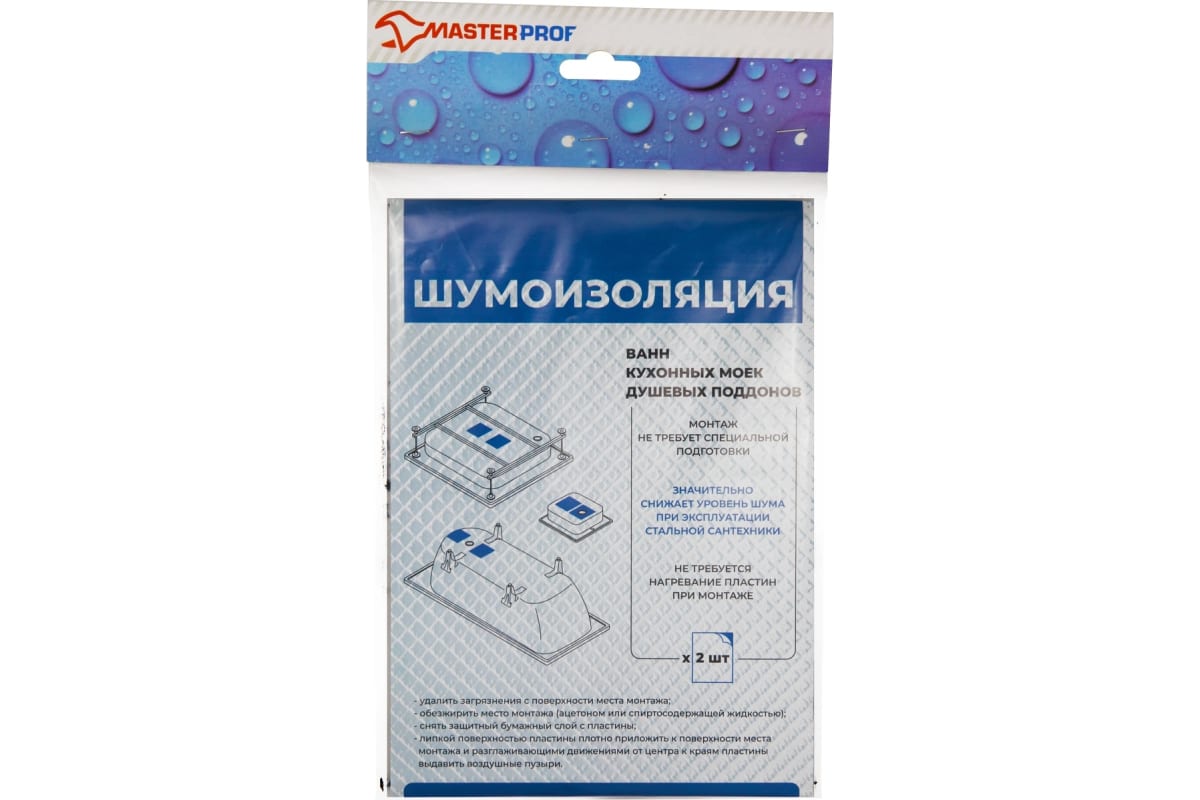 Шумоизоляция для сантехники MasterProf 170x235x3 мм, 2 шт ИС.131358 - материал звукоизолирующий самоклеящийся, предназначен для использования в качестве снижения шума и вибрации у различных объектов, в том числе при эксплуатации стальной сантехники (стальных ванн, душевых поддонов, кухонных моек).