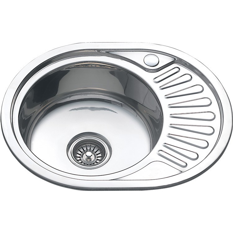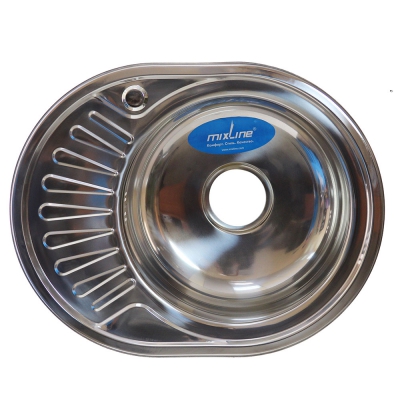 Мойка нержавеющая MIXLINE овал левая врезная 45х57 см тол. 0,6 см глуб. 16 см (выпуск 3 1/2)+ сифон