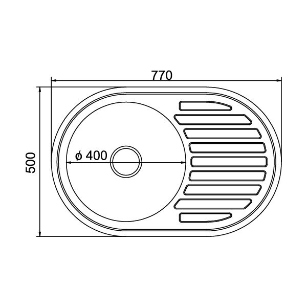Мойка нержавеющая MIXLINE овал правая врезная 50х77 см толщина 0,8 мм глубина 18 см+сифон