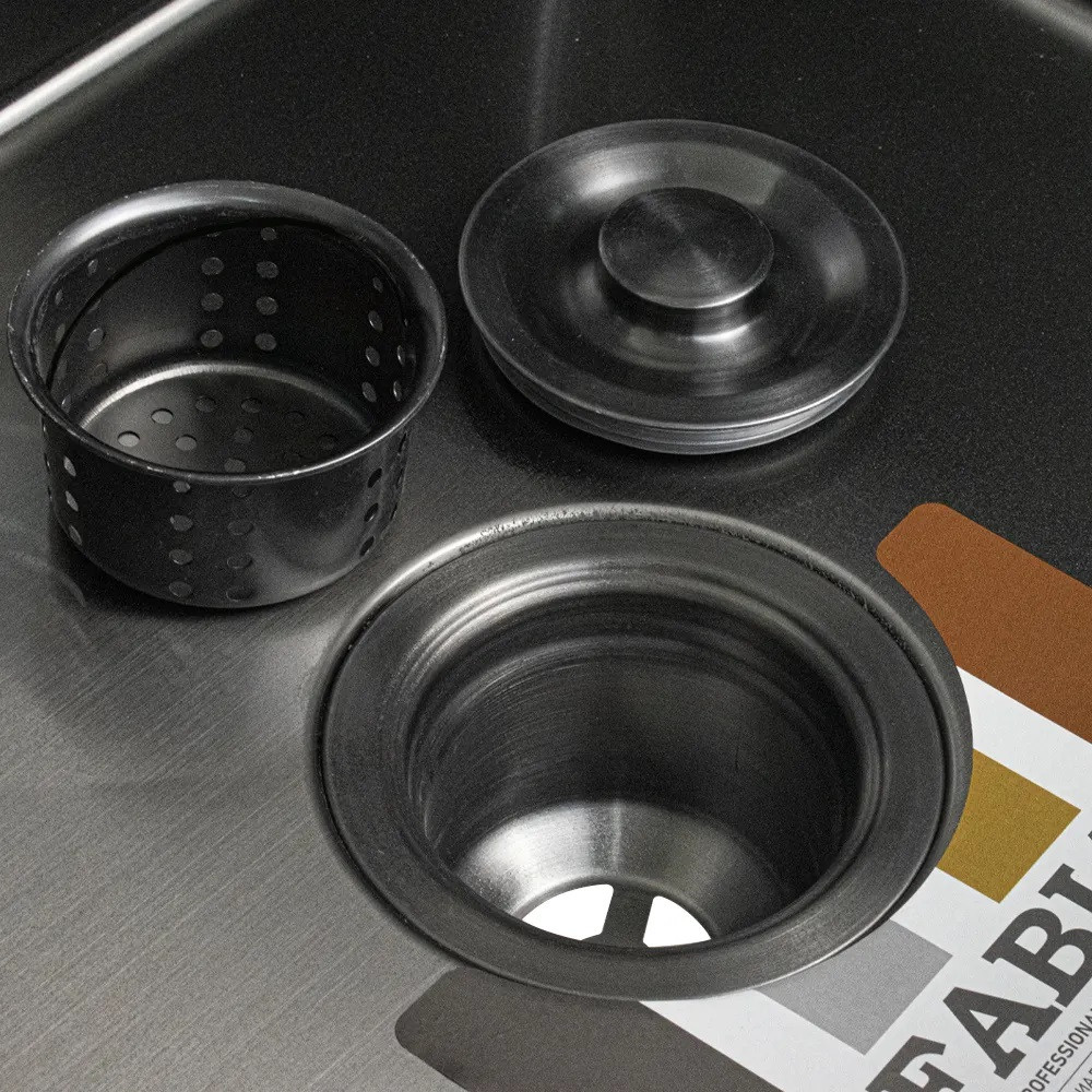 Мойка врезная 50х50 Графит (3.0х200) выпуск 3 1/2 с сифоном, с коландером, FABIA Profi