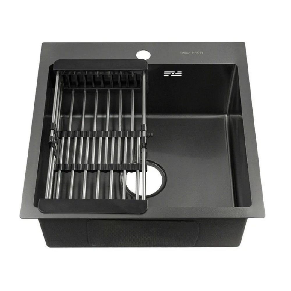 Мойка врезная FABIA Profi Графит 50х50 см выпуск 3 1/2 с сифоном и с коландером /312/