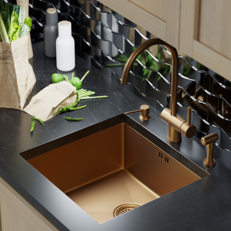 Мойка нержавеющая MIXLINE PRO бронза 45х42см толщина 0,8-3,0мм глубина 20 см (выпуск 3 1/2) + сифон