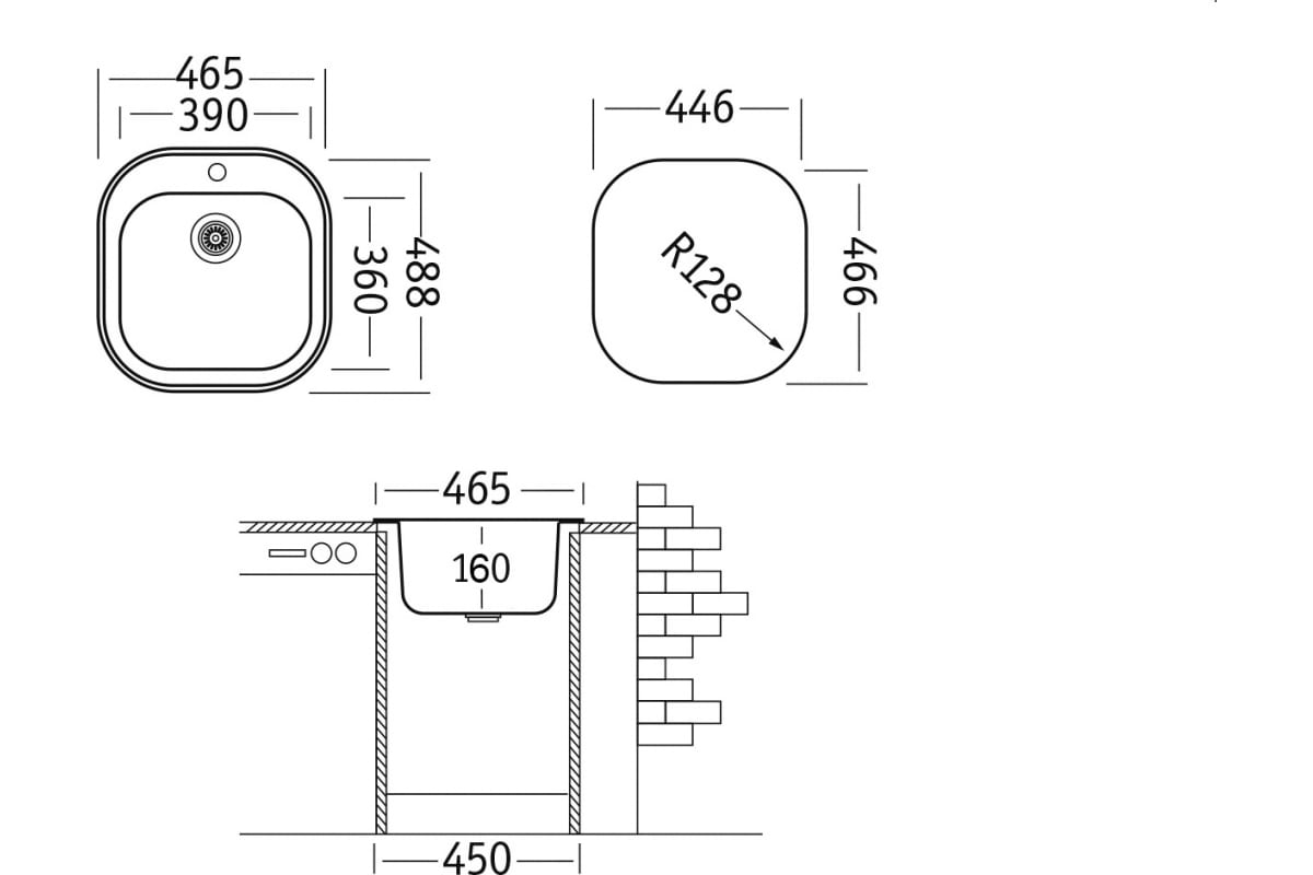Мойка нержавеющая UKINOX "Галант" матовая врезная 46х48 см толщина 0,6 мм глубина 16 см (вып 3 1/2)