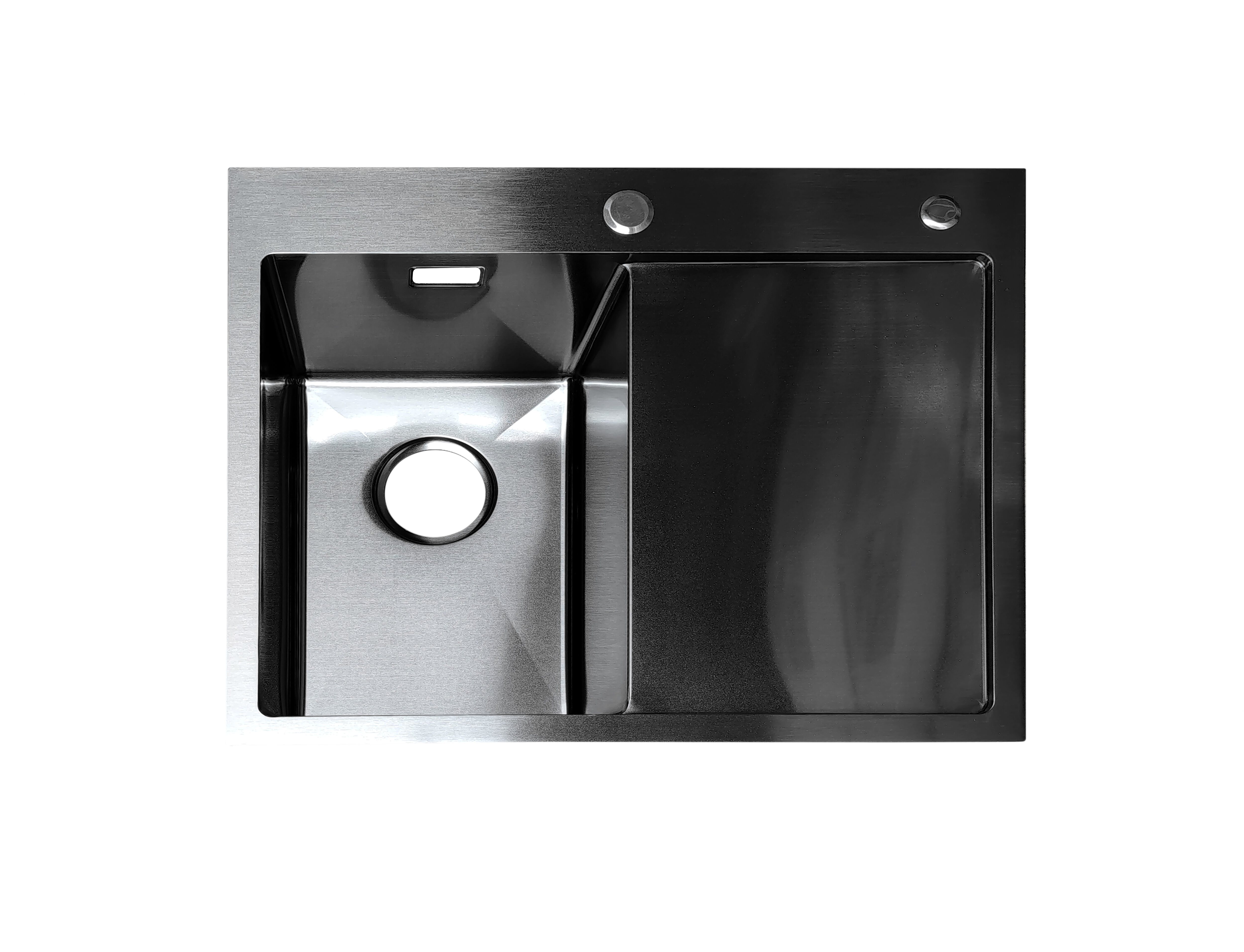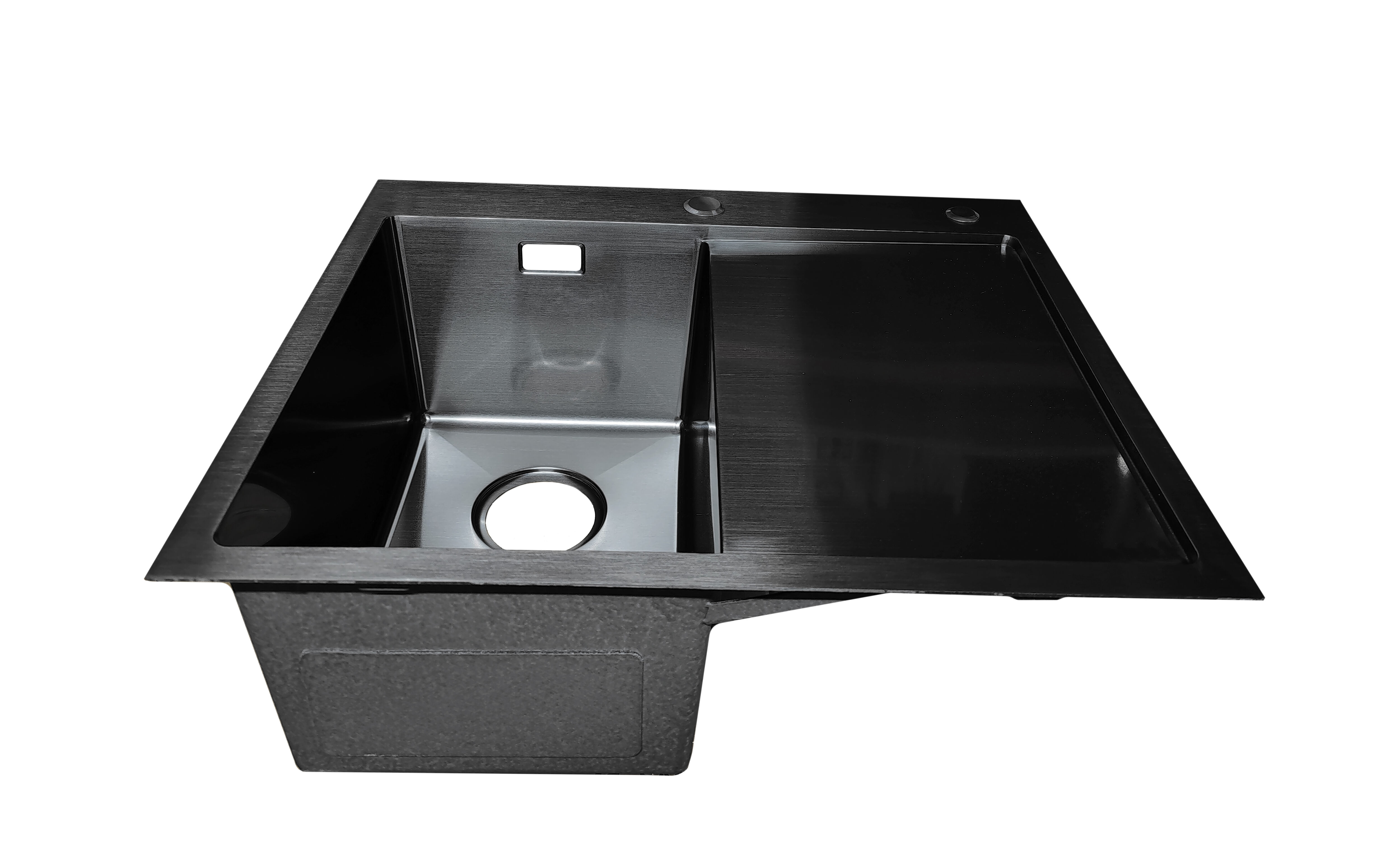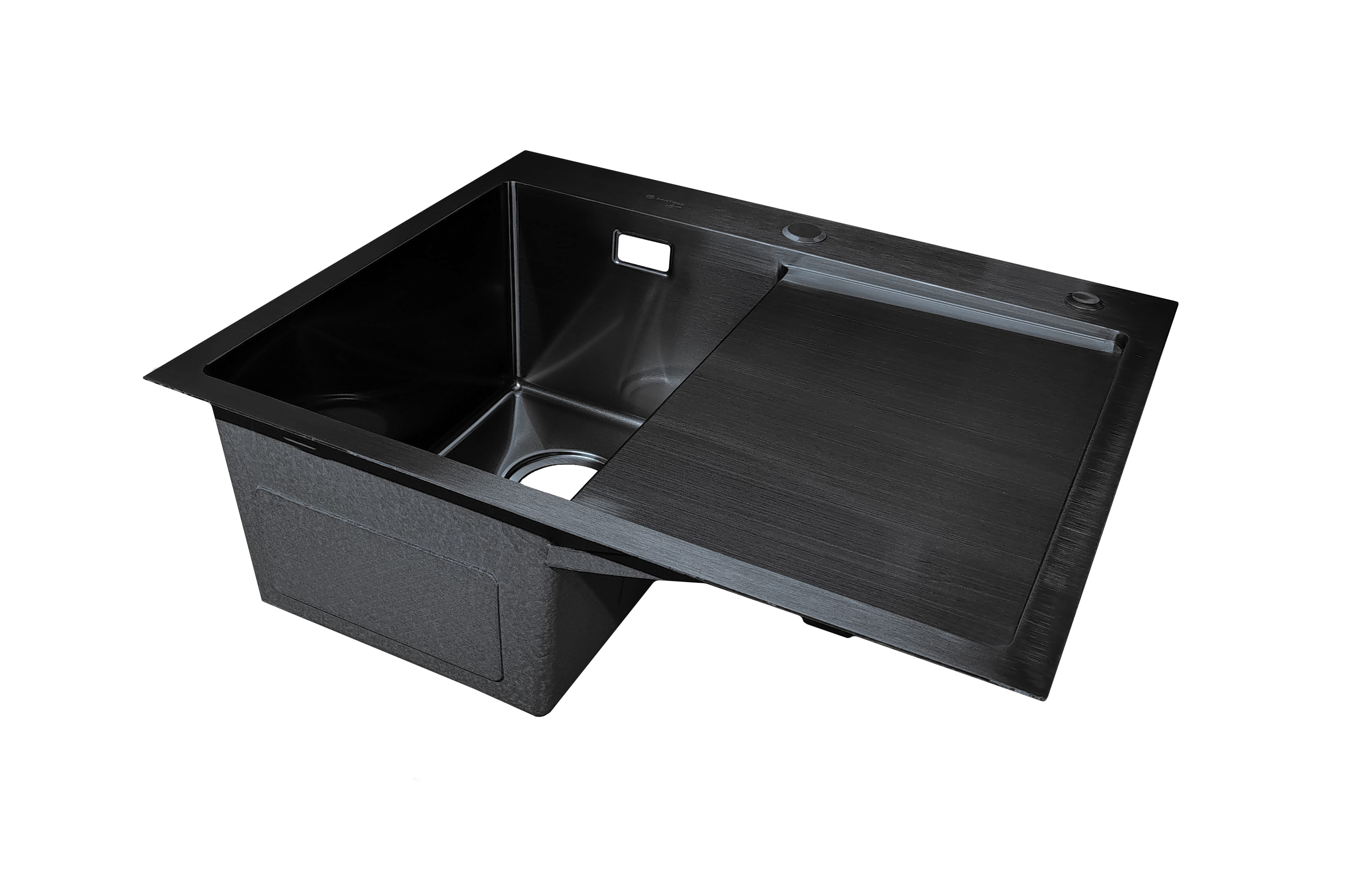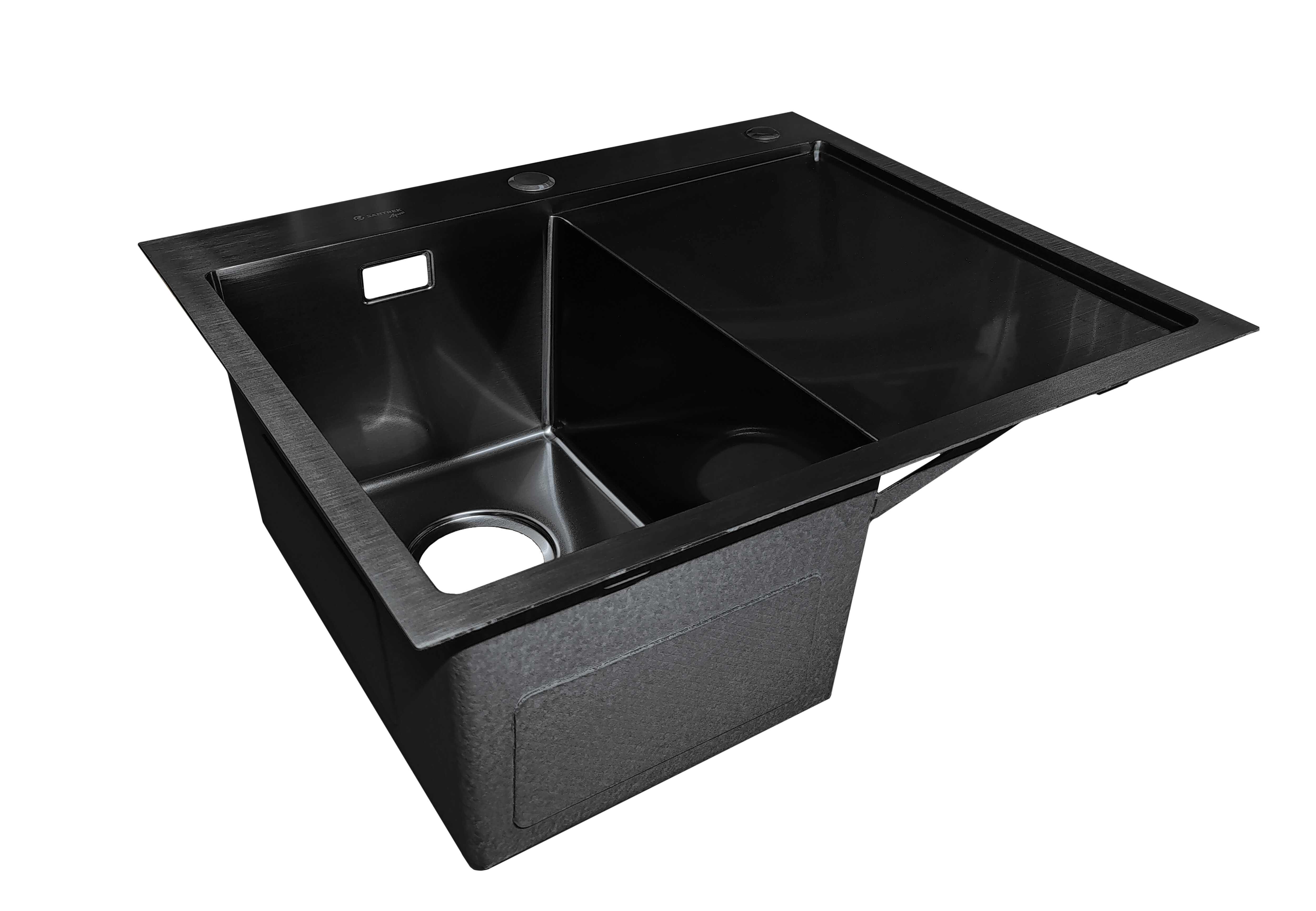 Мойка врезная "SANTREK AQUA" черная левая 60х50х22 см толщина 3 мм D6050HLB (дозатор и коландер)