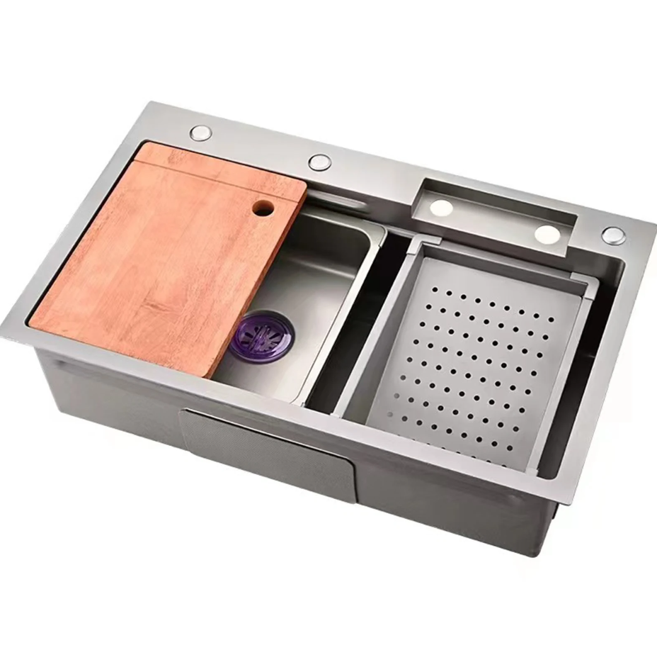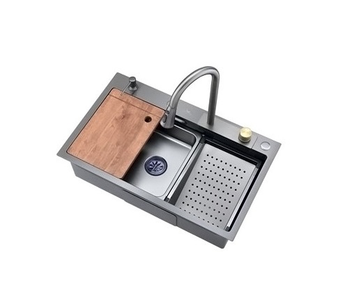 Стильная и практичная кухонная мойка отлично дополнит любой интерьер. Вы сможете установить её, как в уровень со столешницей, так и над, и под столешницей, а для более комфортного использования предусмотрено шумопоглощающее покрытие, которое значительно снижает уровень шума при сильном напоре воды. Мойка имеет специальное защитное напыление, в результате чего на поверхности образуется тонкий и прочный слой, обеспечивающий защиту поверхности от внешних воздействий и наделяющий его особо прочными характеристиками. С мойки легко удалить следы жира, грязи и разводы от воды. Мойка укомплектована в максимальной комплектации: сливная арматура, сливная корзина, врезной дозатор для жидкого мыла, решетка/коландер для овощей, устройство для мытья стаканов. Упакована кухонная мойка в нетканый мешок и индивидуальную картонную коробку.
