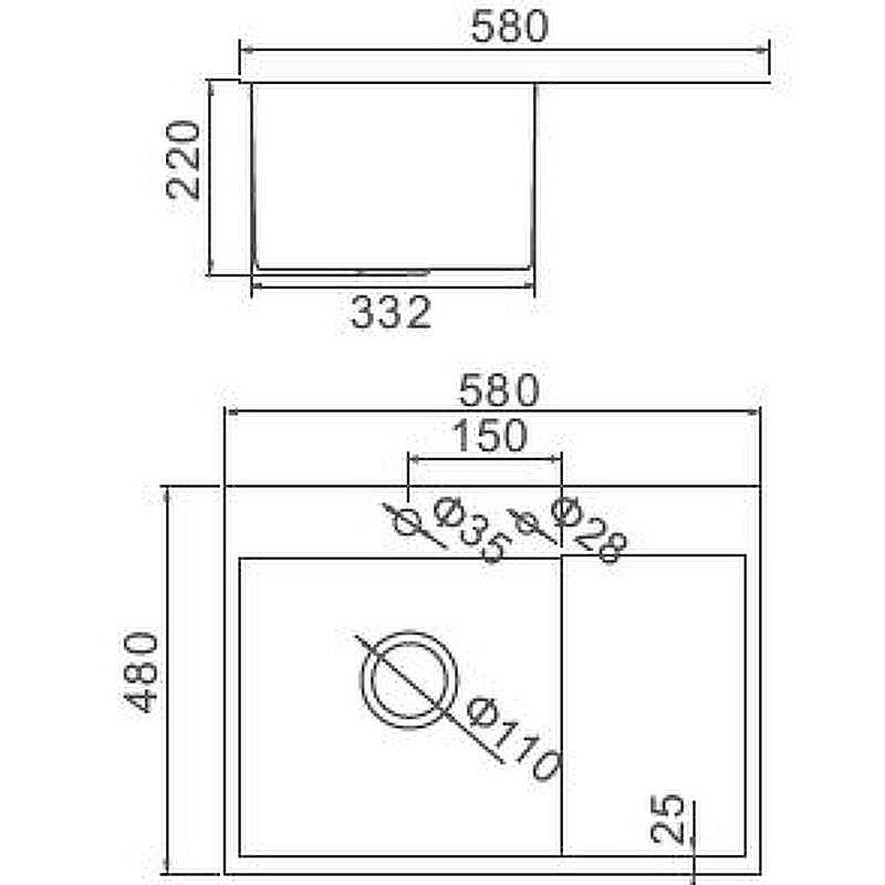 Мойка врезная нерж. 58х48 правая AFLORN,толщина 3,0 мм,цвет Графит,с сифоном/AF95848F-R
