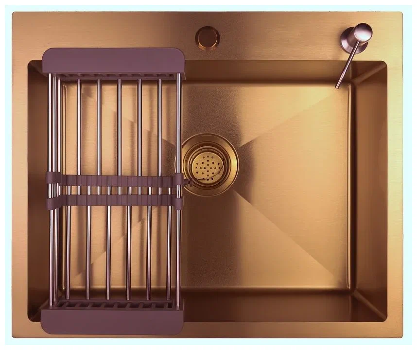 Мойка нержавеющая SIRIUSLINE 60х50,Розовое Золото,круглый выпуск (в компл.:дозатор,коландер,сифон)
