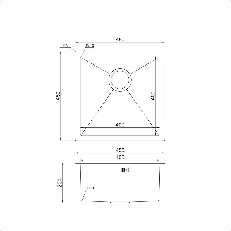 Мойка подст.монтаж 45х45 (3,0) вып 3 1/2 MIXLINE PRO 20см с сифоном(сатин)