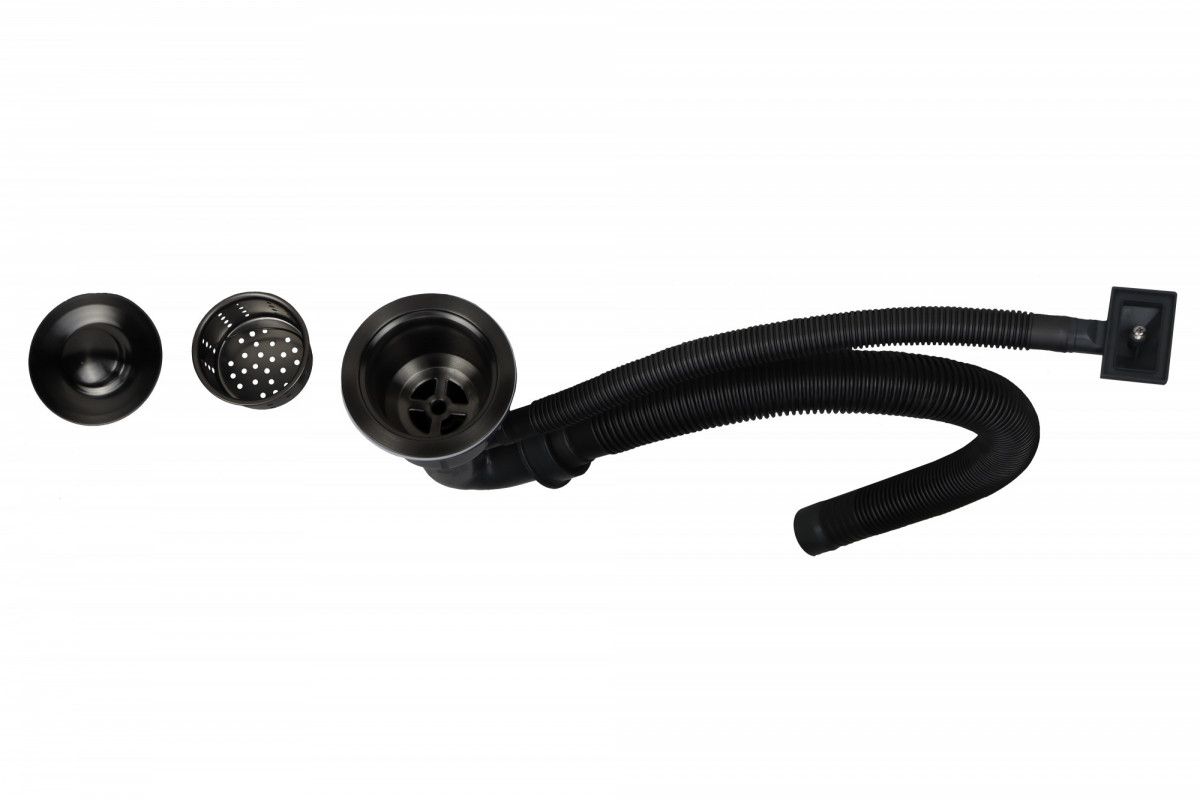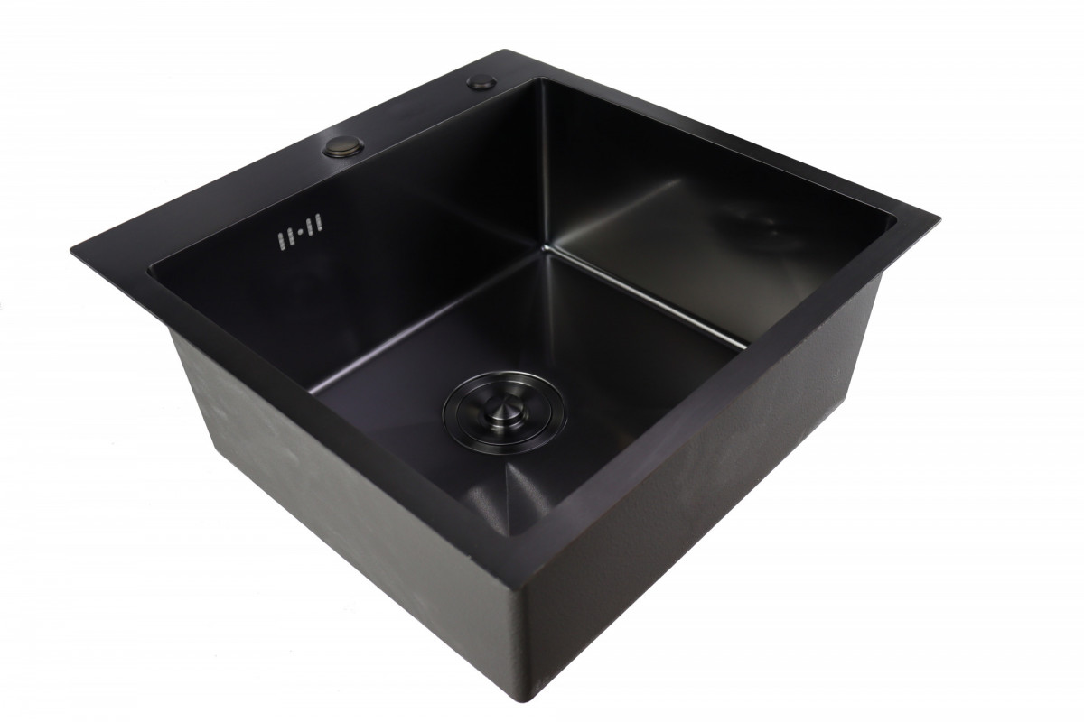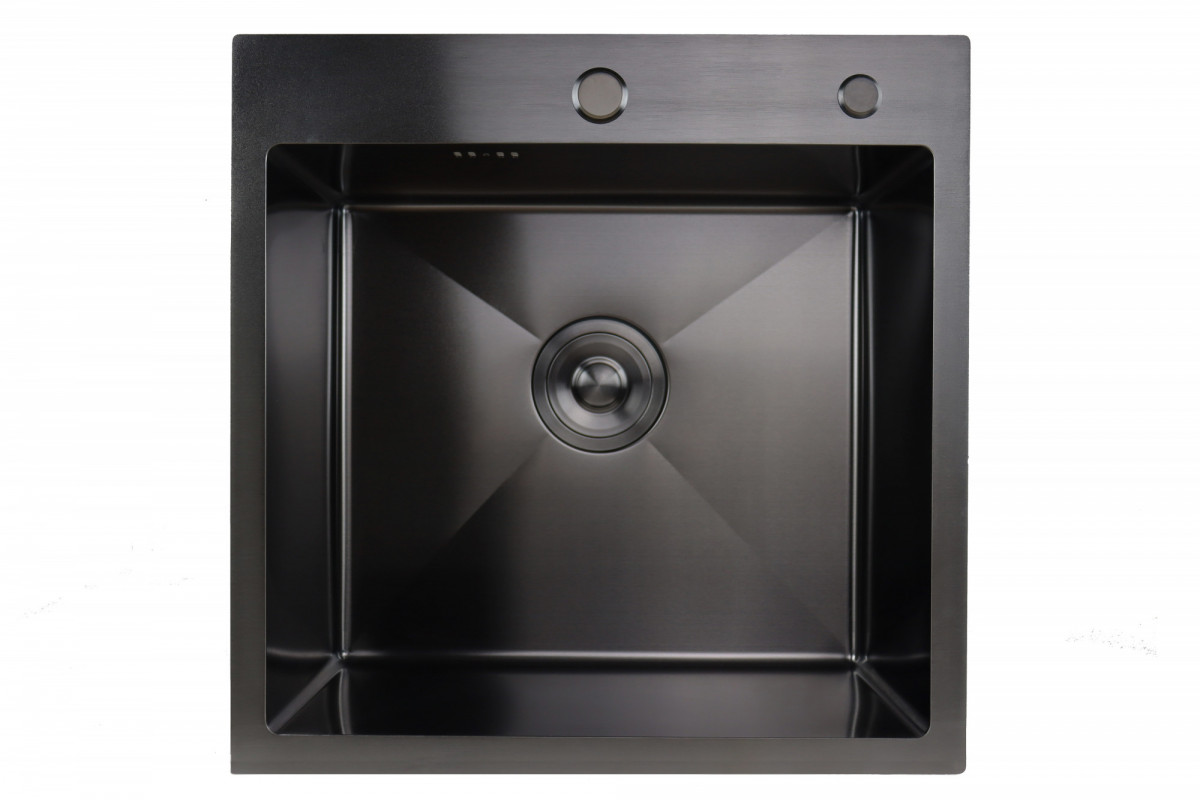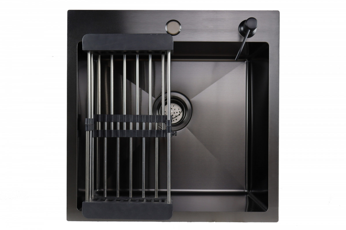 Мойка врезная SIRIUSLINE 50х50, Графит, кругл.выпуск в комплекте дозатор, коландер, сифон