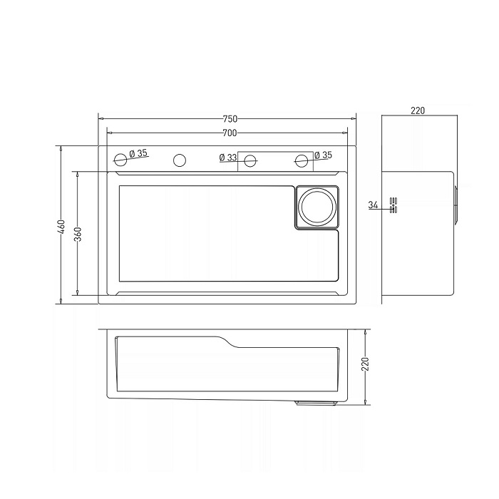 Мойка настол.монтаж 75х46 (3,0) вып 3 1/2 MIXLINE PRO 21,5см(сатин) сиф.+доз+смес+кол+д/р+о/с 552103