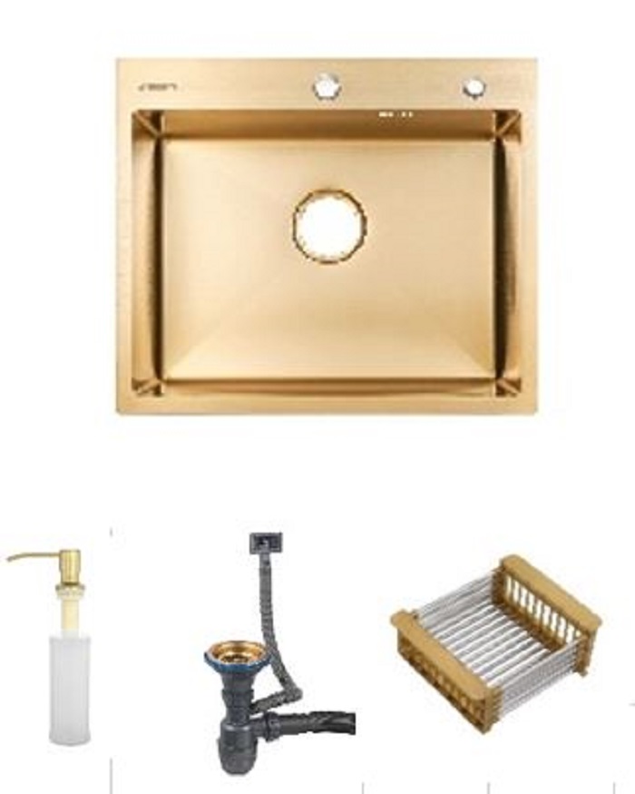 Мойка нержавеющая Zegor 50х50, Золото (в компл.:дозатор,коландер,сифон) ML-5050KG