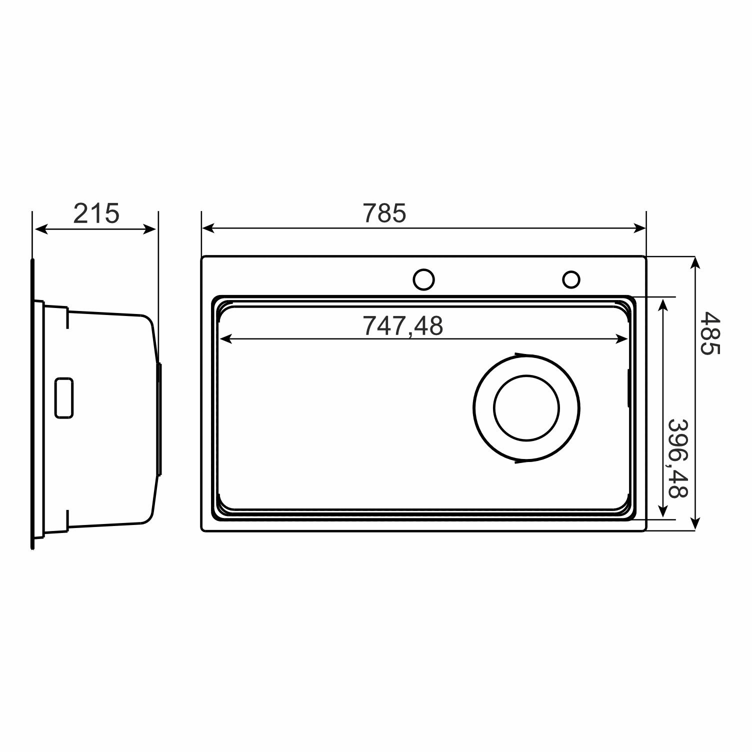 Дно чаши мойки имеет небольшой наклон, такая конструкция обеспечивает полный сток воды.