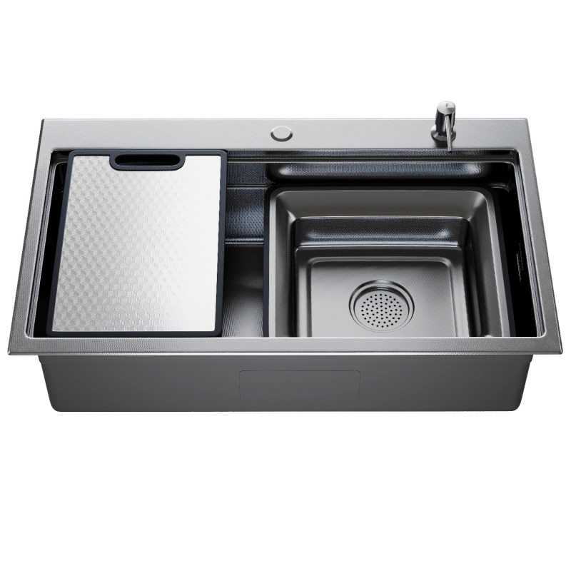 Комплектация мойки: встраиваемый дозатор мыла, разделочная доска, металлический коландер, сифон.