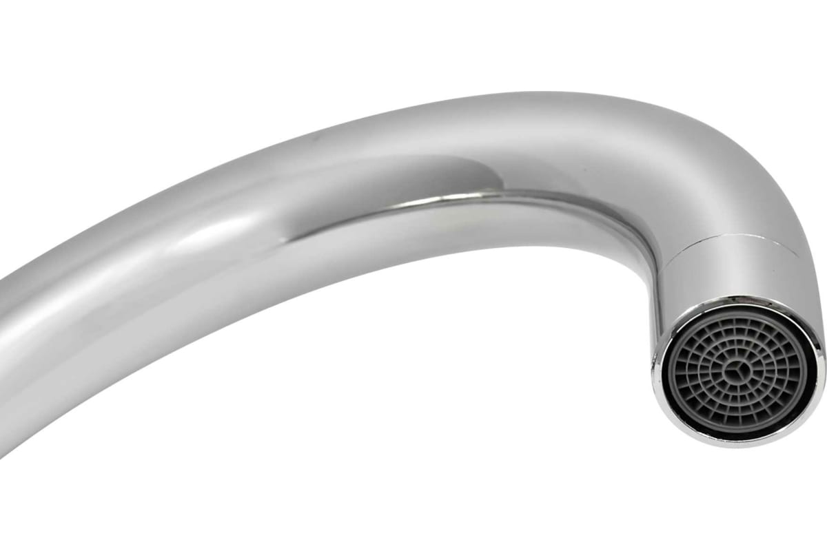Это надежный смеситель, 5 лет гарантии. Он идеально подойдет к вашей мойке и впишется в интерьер любой кухни. Кран смеситель для кухни ( для раковины ) сделан из из прочного сплава алюминия с кремнием. В комплекте имеется гибкая подводка 35 см ( ниппель из латуни ) и крепеж. Кран для кухни имеет поворотный высокий излив ( гусак ), у него есть аэратор для смесителя - насадка на кран для экономии воды. У смесителя надежный керамический картридж диаметром 35 мм. Смеситель для мойки может использоваться и для дачи, а ещё как сантехника на кухню ( и даже в ванную комнату).