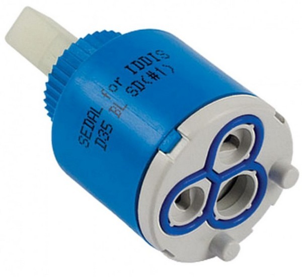Картридж для смесителя предназначается для смешивания потока горячей и холодной воды с целью получения на выходе комфортной температуры. Имеет три отверстия: для подачи и выхода воды.