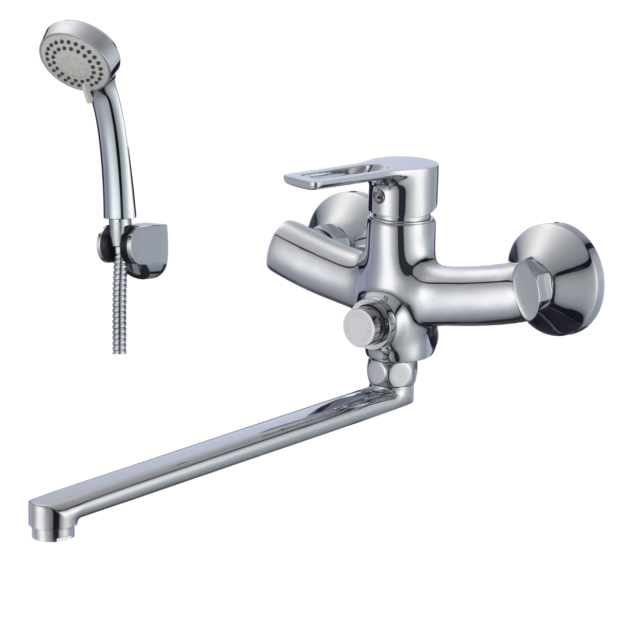 Смеситель для ванны ROSINKA универсальный с плоским изливом, 300мм, хром, RS43-32