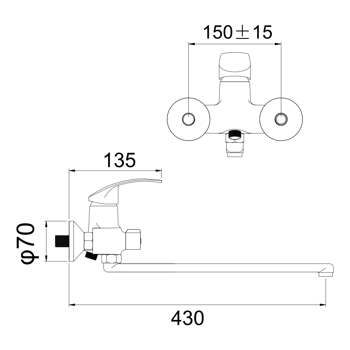 Смеситель универсальный с плоским изливом и переключателем для душа