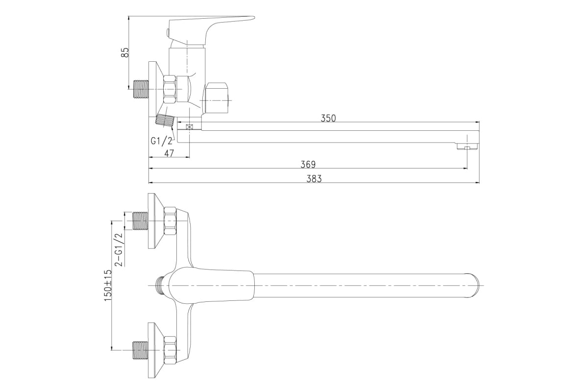 Смеситель для ванны ROS-KA хромированный с поворотным изливом 350 мм