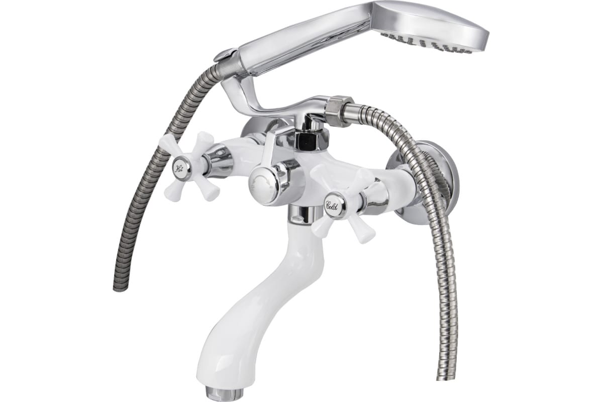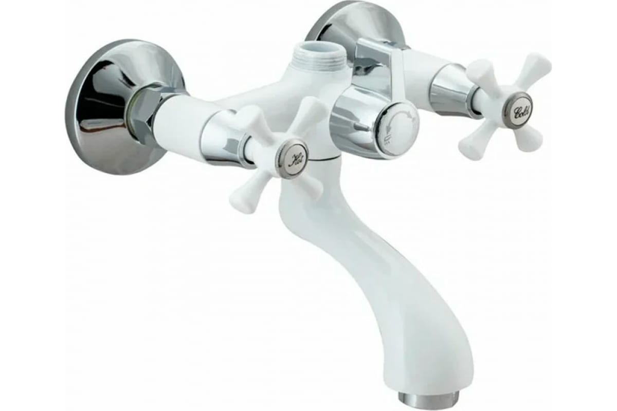 Смеситель для ванны Ek короткий излив переключатель в корпусе, белый предназначен для вертикального крепления. Смеситель данной коллекции подходит для разных интерьеров ванной комнаты.