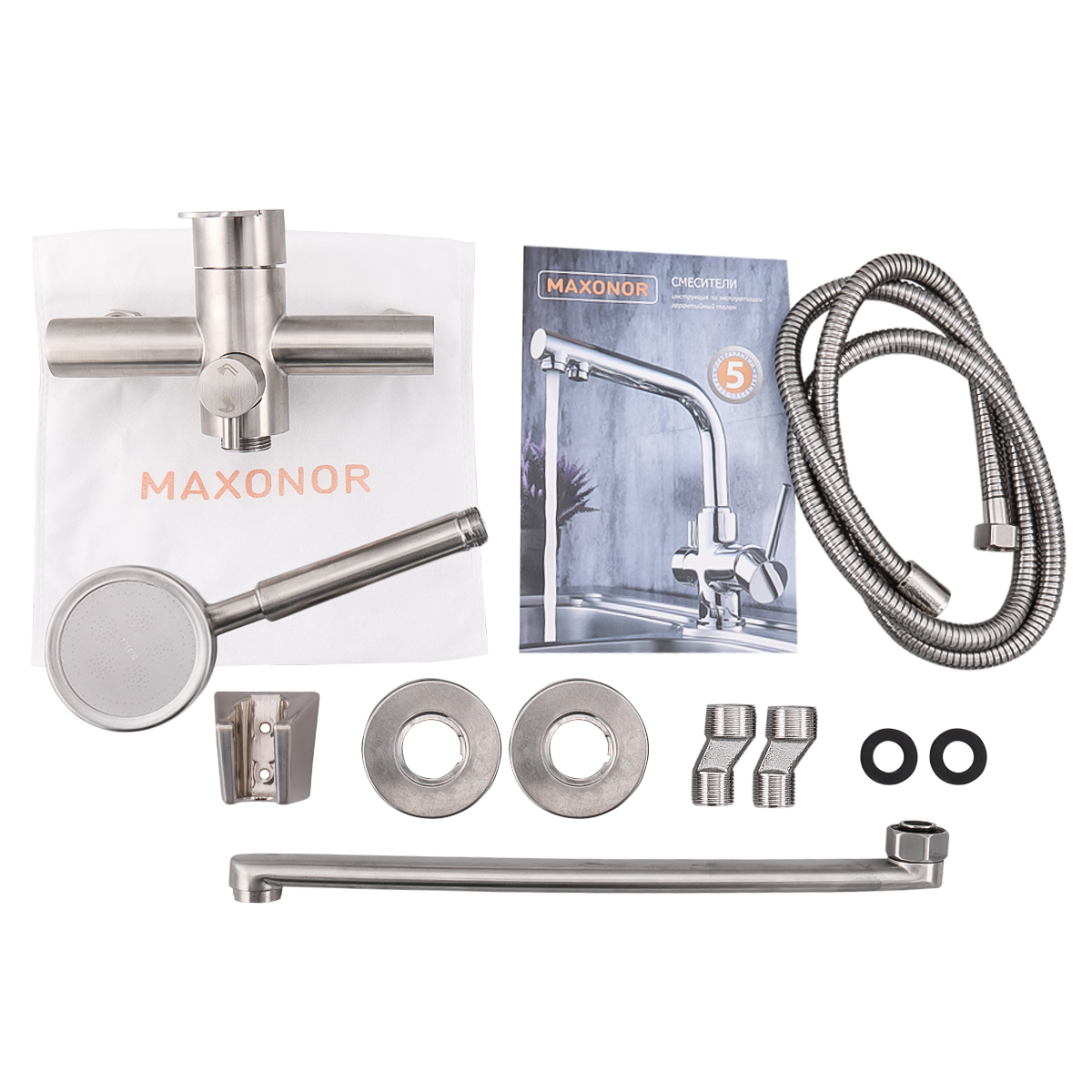 Смеситель для ванны MAXOR сатин с длинным изливом 320 мм 22801