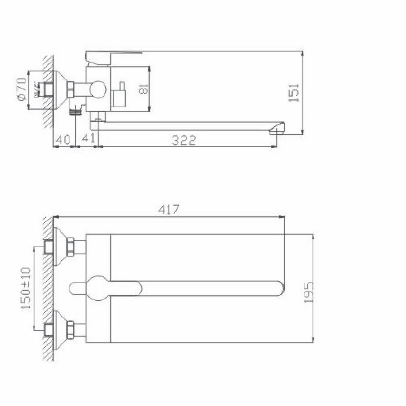 Межцентровое расстояние (мм) - 150