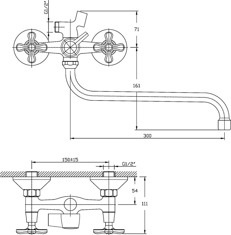 Смеситель для ванны "RUSH" Sakhalin хромированный с длинным изливом 354 мм SA5350-51