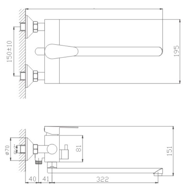 Смеситель для ванны с керамическими ручками предназначен для настенного крепления.
