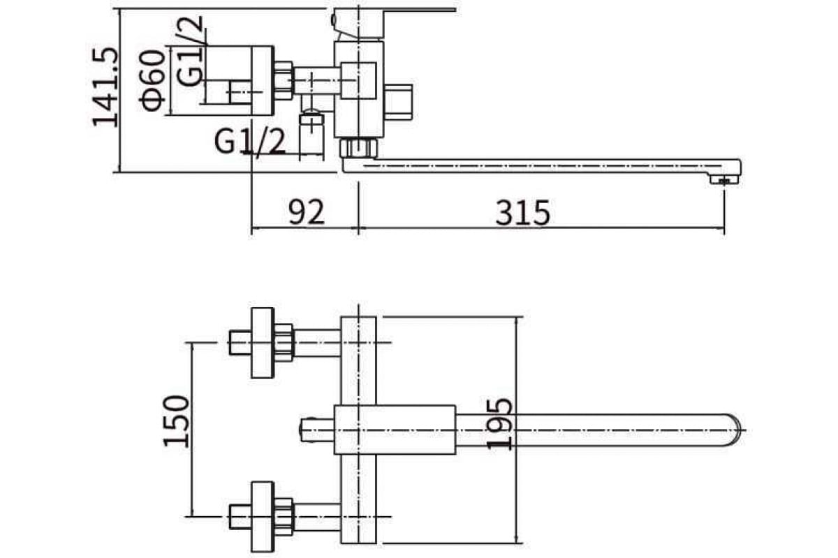 Длина излива- 315 мм