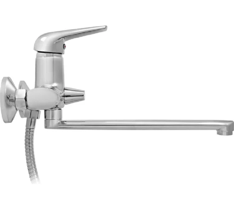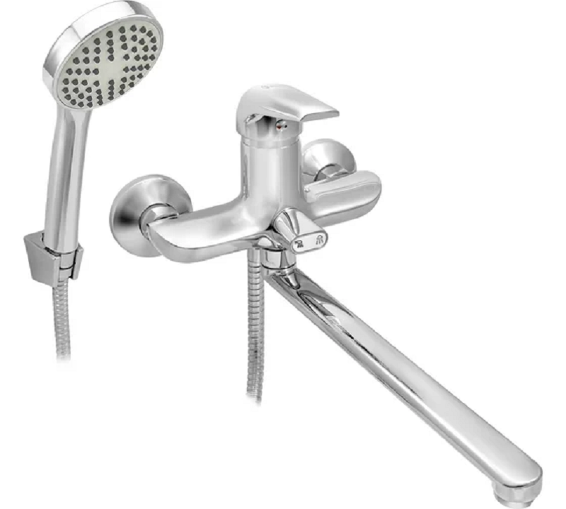 Смеситель для ванны Juguni с длинным изливом,шланг 150 см, лейка,нержавеющая сталь/0402.131