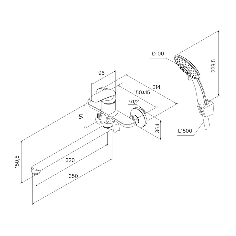 • Ручная лейка из прочного ABS-пластика, ПВХ-шланг (1,5 м) в тон смесителя и крепеж идут в комплекте.