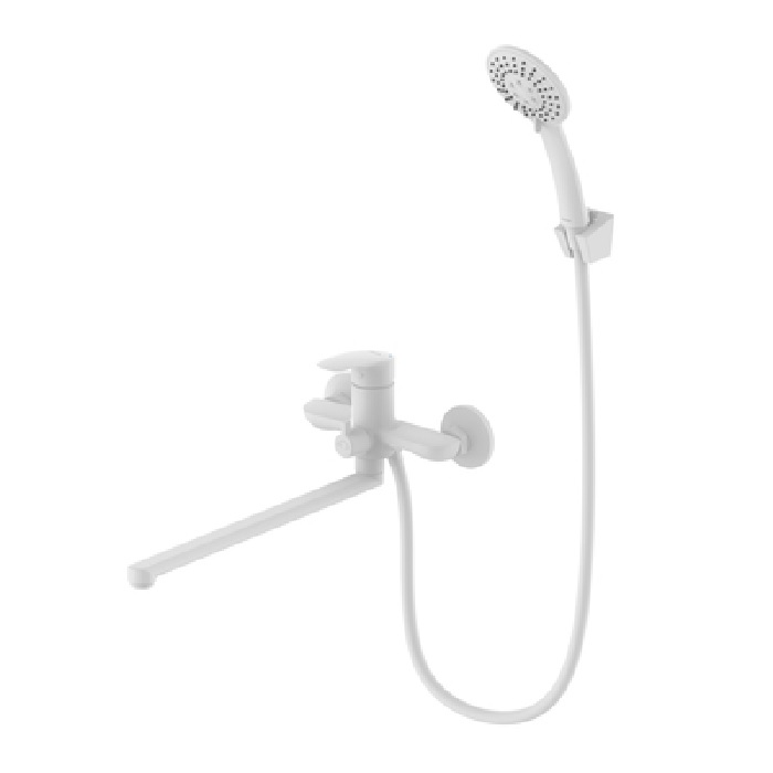Смеситель для ванны Milardo Рора длинным изливом, белый матовый RORWT00M10