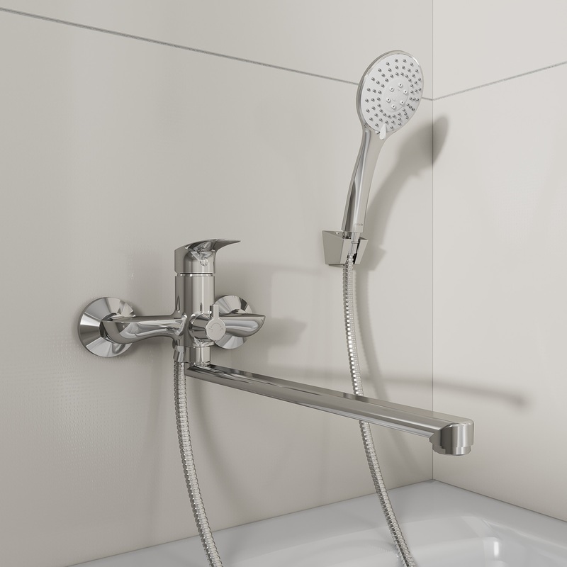 Смеситель для ванны Rora отличается универсальным характером: основной акцент в его дизайне приходится на плавные линии корпуса и классическое цветовое решение. Наличие длинного (35 см) излива позволяет использовать пространство ванны максимально эффективно. Интенсивность и температура потока легко регулируются удобной ручкой смесителя. Поворотный дивертор работает при любом давлении воды, переключая поток воды на большую душевую лейку (ø 100 мм) или в комбинированном режиме.