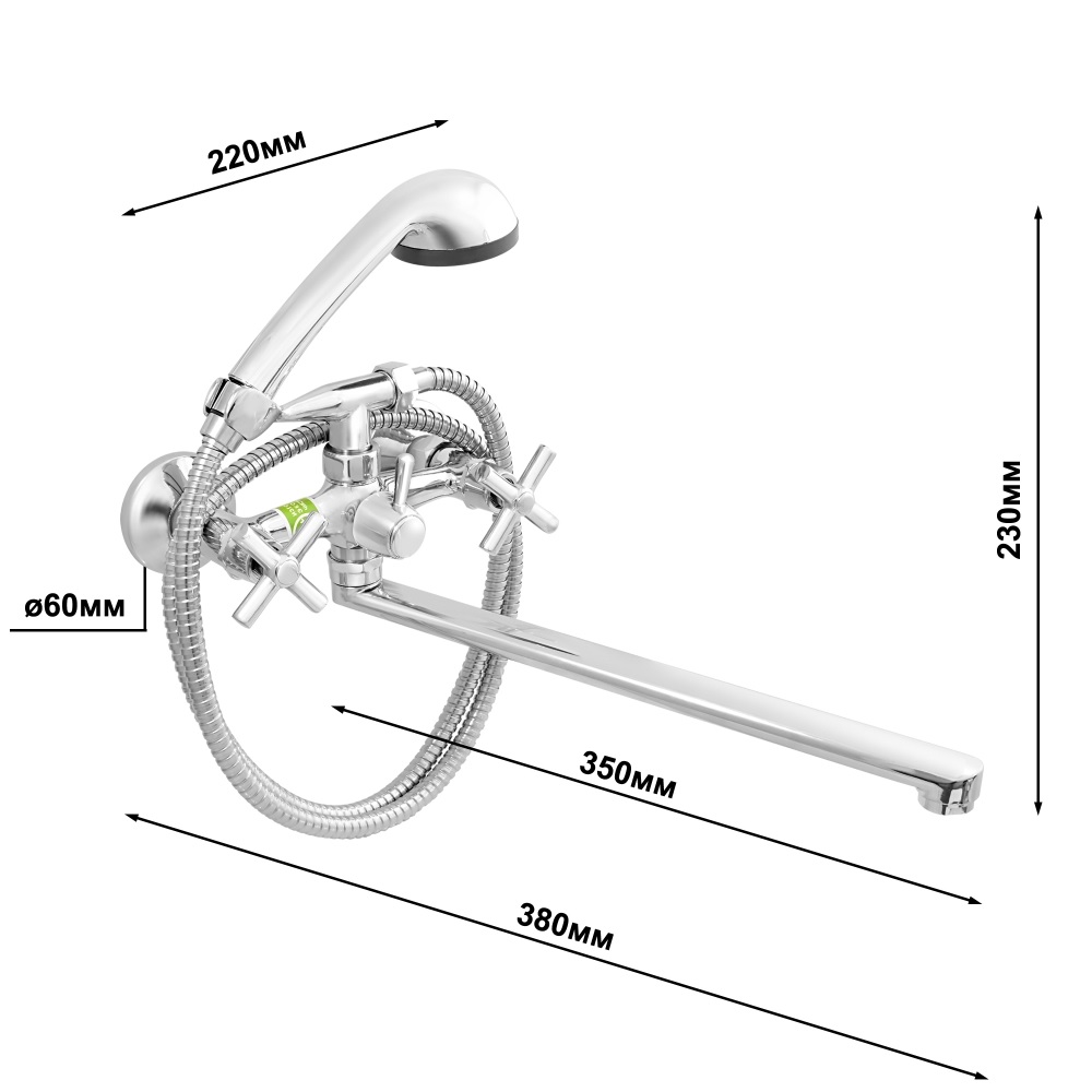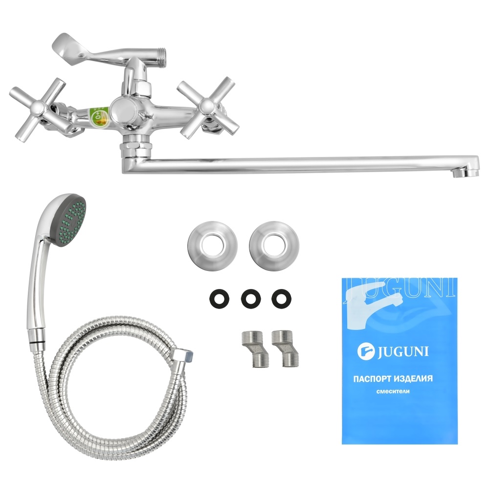 Смеситель для ванны Juguni "Adromeda" двуручный, длинный L-излив 30см 0402.721