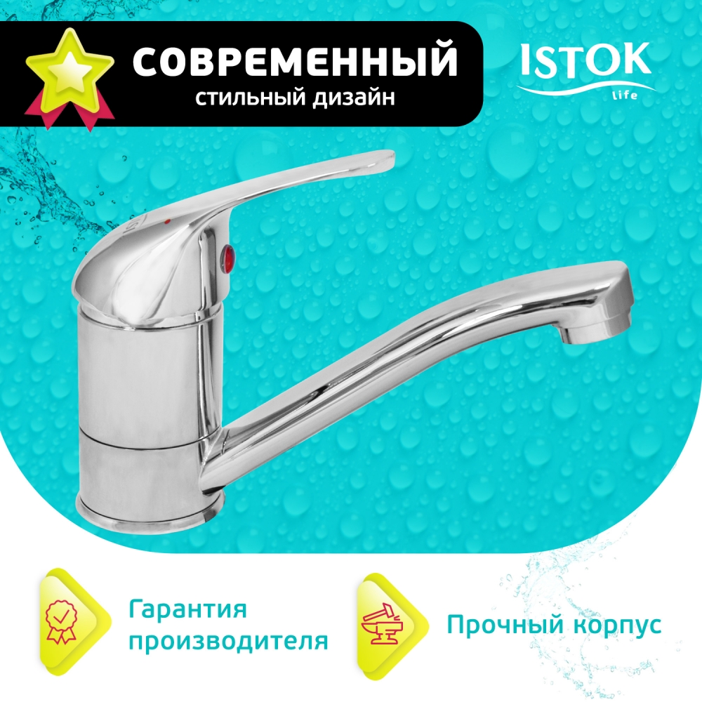 Смеситель для умывальника ISTOK LIFE латунь с коротким изливом 105 мм 0402.7830402.783- купить в АПлайн
