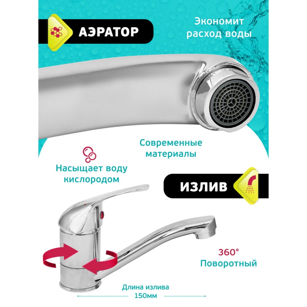 Комплектация: смеситель – 1 шт., крепеж – 1 шт. (гайка), паспорт (с гарантийным талоном) – 1 шт. Размер индивидуальной упаковки, см: 25х15х5,5.