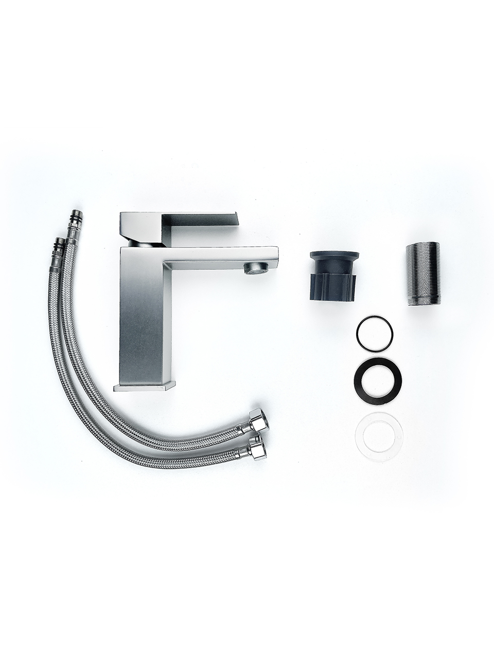 Комплектация Смеситель, подводка для воды 2 шт, гайка крепления, паспорт, пакет